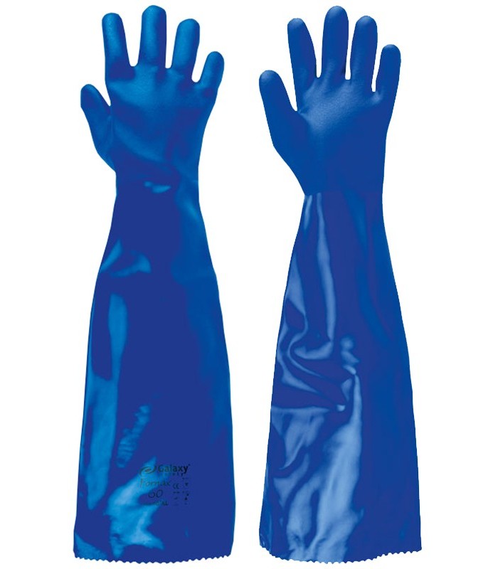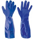 Γάντια 60 cm, πολύ μαλακά, με διπλή πλήρη επίστρωση PVC, αμμώδες φινίρισμα στην παλάμη, βαμβακερή επένδυση. Ιδανικά για εργασία με λάδια και πετρελαιοειδή, πέτρα, μάρμαρο κτλ. Εξαιρετική αντοχή στην τριβή και καλή αντοχή στο σκίσιμο. Αντοχή σε χημικά.