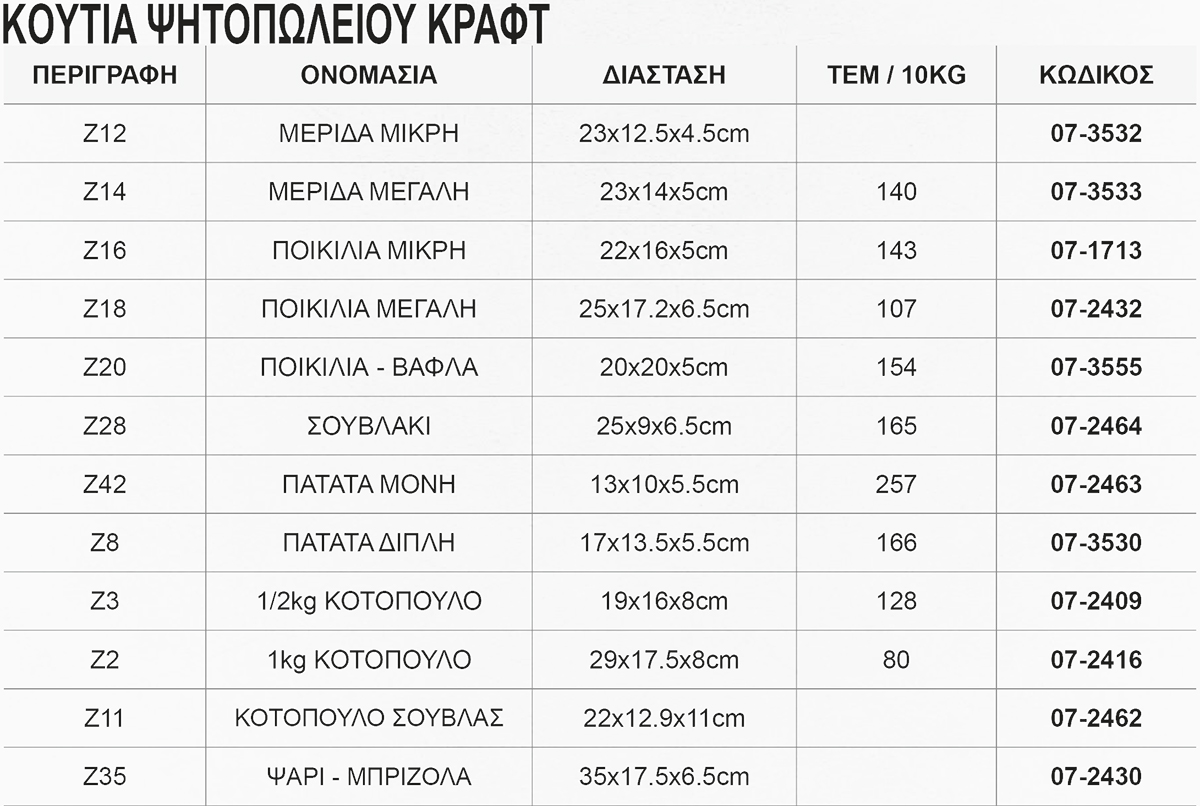 ΚΟΥΤΙ ΨΗΤ/ΛΕΙΟΥ Ζ16 ΠΟΙΚΙΛΙΑΣ ΜΙΚΡΗ KRAFT 22x16x5cm 10 ΚΙΛΑ