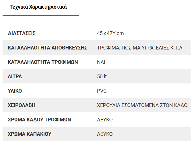 ΚΑΔΟΣ ΤΡΟΦΙΜΩΝ ΛΕΥΚΟΣ 50 lt ΙΤΑΛΙΑΣ ΜΕ ΧΕΡΟΥΛΙΑ ΕΝΣΩΜΑΤΩΜΕΝΑ ΣΤΟΝ ΚΑΔΟ