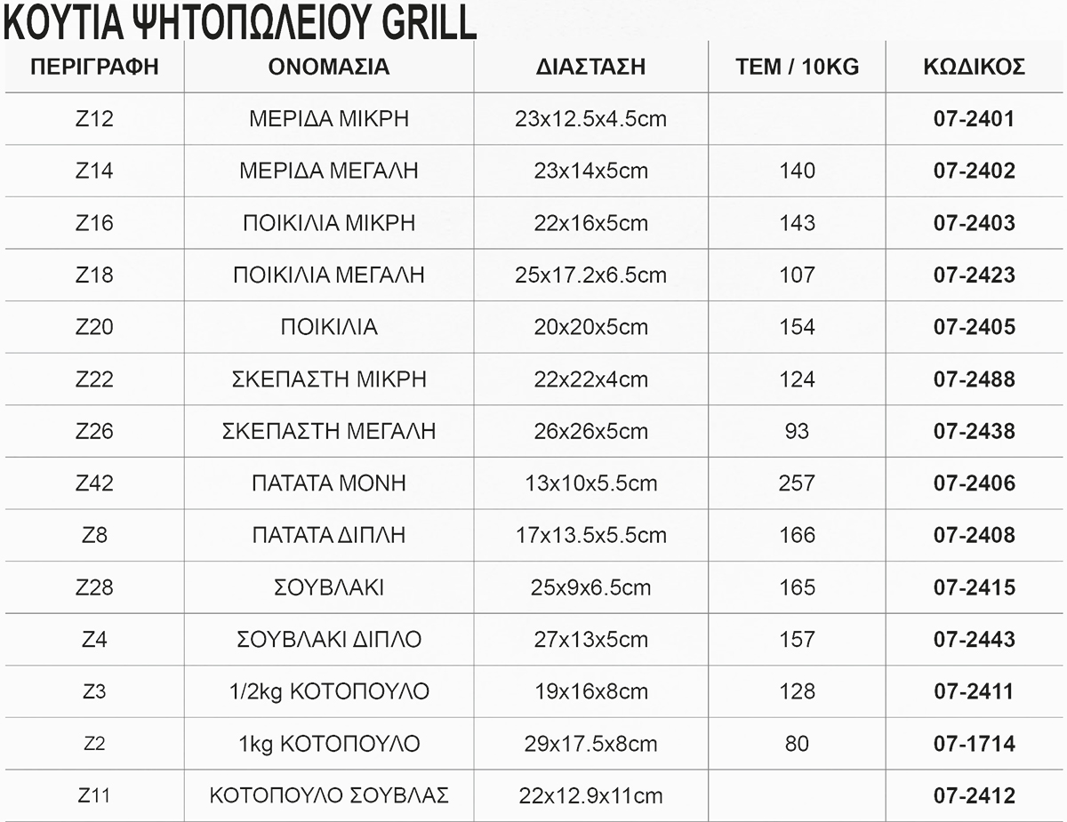 ΚΟΥΤΙΑ ΨΗΤ/ΛΕΙΟΥ Ζ28 & Ζ4 ΓΙΑ ΣΟΥΒΛΑΚΙ GRILL 10 ΚΙΛΑ